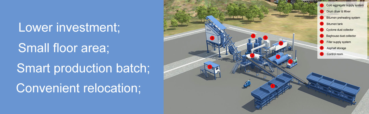 QLB series mobile asphalt mixing plant has simple and beautiful structure and high degree of modularization in design. It is used for the construction and maintenance of urban and rural infrastructure.