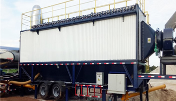 Dust laden air can be filtered through a fabric filter where environmental legislation demands. Mounted on the main chassis, the exhaust fan draws air through specially designed fabric filter bags. Collected dust is screwed back into the mixing section of the drum.![]() |
